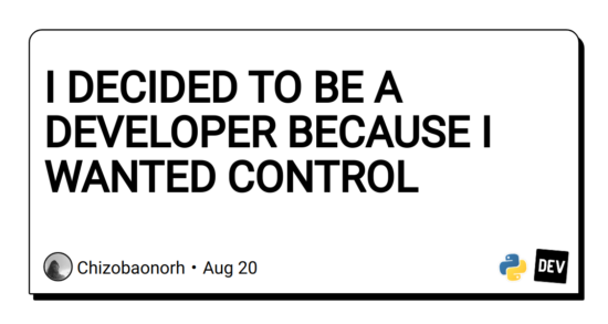 This is my entry for a writing challenge that is hosted on hashnode, so pls click on this link to be redirected. I DECIDED TO BE A DEVELOPER BECAUSE I WANTED CONTROL.