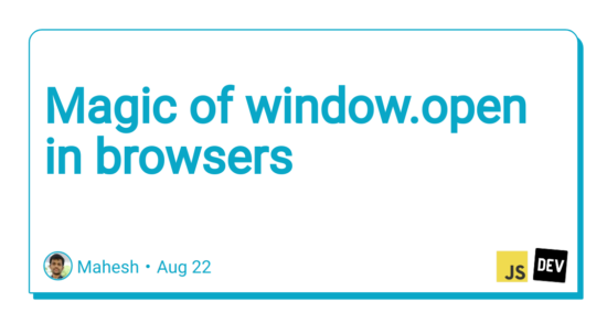 const windowObj = window.open('https://dev.to/urstrulyvishwak', 'JS_Articles', 'popup');