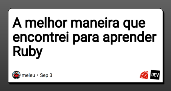 Esse artigo contem uma lista de coisas que estão funcionando muito bem para o meu aprendizado da linguagem Ruby. Estou compartilhando aqui pois acredito que também possa ter alguma valia para pessoas que tenham um perfil parecido.