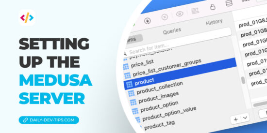 The default medusa server will work based on an SQLite database, and we can super easily connect to the actual file with any database client.