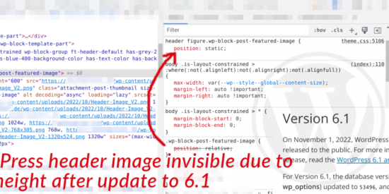 After my customer’s web hoster updated WordPress from 6.0.2 to 6.1, the responsive hero header images were not visible anymore. Comparing the HTML source code and CSS styles, we found the problem and the solution.