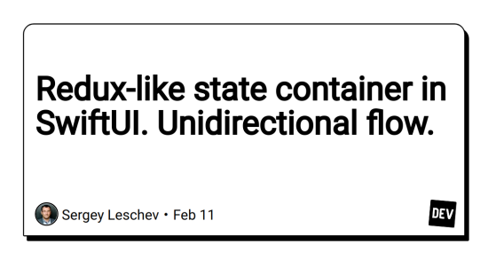 Every view has a read-only access to the state via store object. Views can send actions to the store object. Reducer modifies the state, and then SwiftUI notifies all the views about state changes. SwiftUI has a super-efficient diffing algorithm that’s why diffing of the whole app state and updating changed views works so fast. Let’s modify our store object to support sending actions.