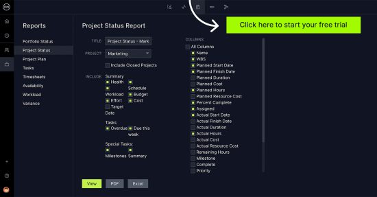 ProjectManager is online project management software that can generate customizable reports that show real-time data to help you see your progress and make more insightful decisions. You can create reports on project status, tasks, workload, variance and more. All reports can be filtered to show just the data you want to see and shared with stakeholders to keep them updated. Get started with ProjectManager today for free.