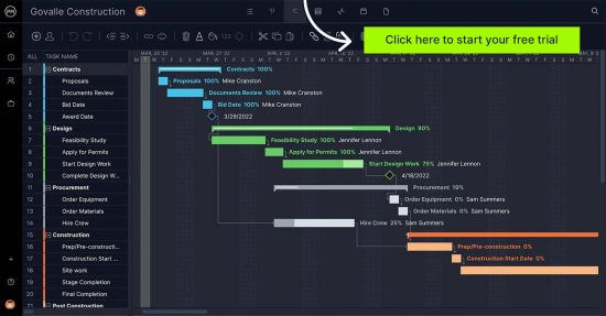 With ProjectManager, our cloud-based Gantt charts let you schedule your entire project timeline, assign tasks, create dependencies and track all of it. Additionally, we have team collaboration features that allow your staff and managers to comment on tasks, attach necessary files, and interact with each other no matter where they’re located.