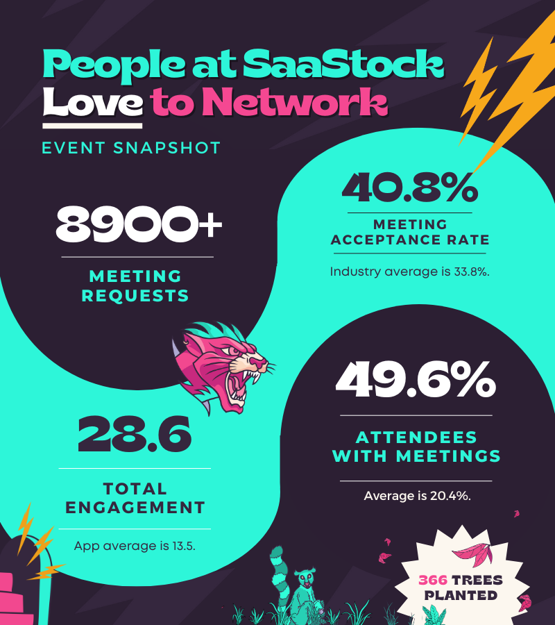 At SaaStock 2022, there were over 8900+ meetings requested, and a 40.8% acceptance rate – that’s 7% above average!