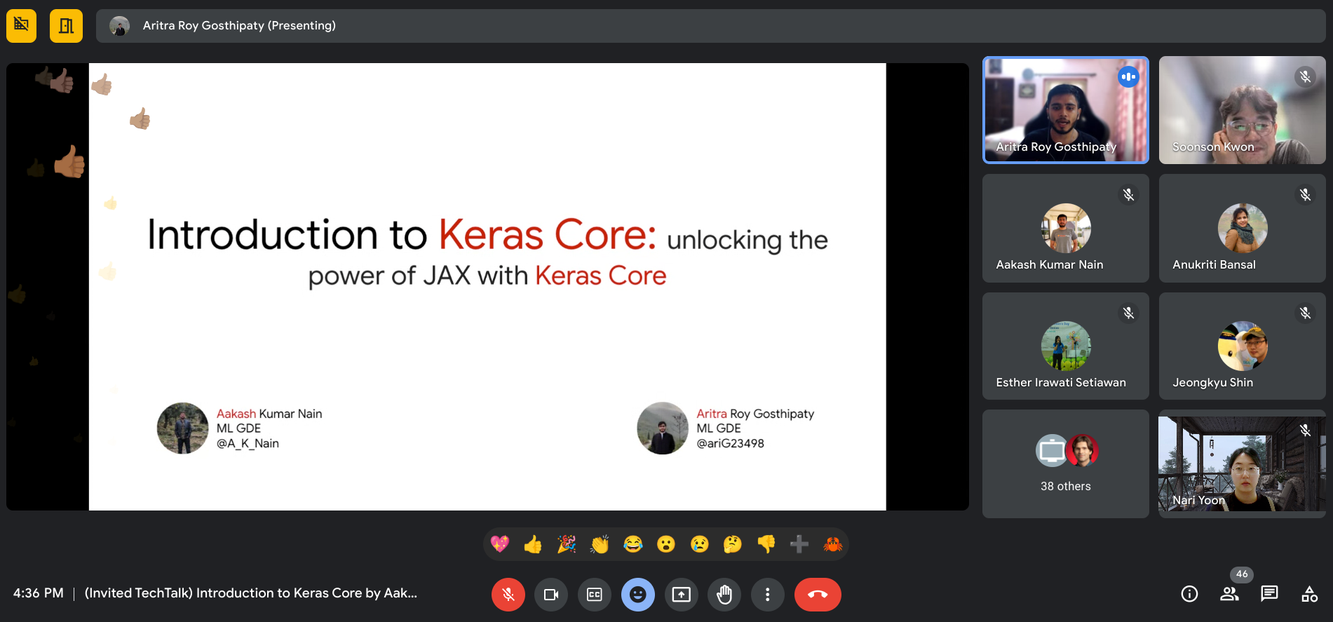 Introduction to Keras Core: unlocking the power of JAX with Keras Core by ML GDE Aakash Nain (India) and ML GDE Aritra Roy Gosthipaty (India) was an online talk for ML Community members including ML GDEs, TFUG & 3rd party ML community’s organizers. They gave a walkthrough of how to leverage Keras for JAX, how to train neural networks on a single machine and in a distributed setting with multiple GPUs.