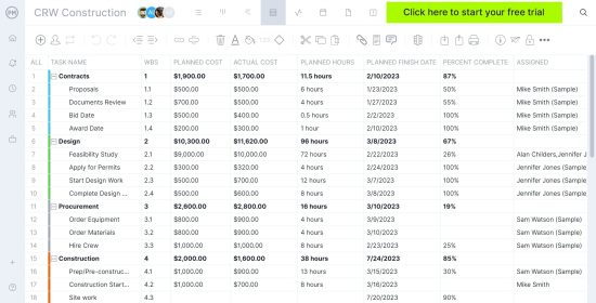 Teams are a project’s most valuable resource. Without a project team, no amount of raw materials, equipment, etc., will deliver your project. The ability to keep teams productive without eroding morale is critical to a successful project. First, you can set your team’s availability, such as vacation time, PTO and even global holidays for remote workers, which makes it easier to assign them to tasks. Then toggle over to the color-coded workload chart and balance their workload to keep them working at capacity.