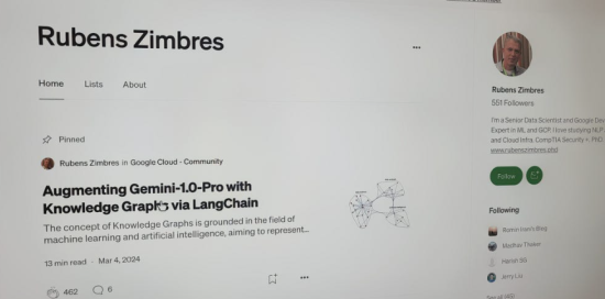 AI/ML GDE Rubens Zimbres (Brazil) shared how he increased the number of readers and followers on his Medium channel. From Mar 2023 to Mar 2024 (1 year), readers have increased by 700% and followers increased by 800%! One of his articles, Augmenting Gemini-1.0-Pro with Knowledge Graphs via LangChain boosted his channel with reaching 2.9k reads in two weeks. (This tutorial gets 460+ Claps!👏) He attributed this increase in content popularity to 4 factors: 1) following and writing about cutting-edge technologies in Google Cloud, AI/ML and cyber security, 2) greater adoption of Google Cloud infrastructure to deliver AI/ML products, 3) Google for Developers’ social media support, 4) the platform’s support to writers with fresh and relevant material.