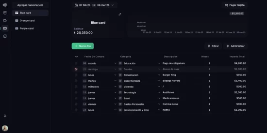 Credit Card Tracking: Monitor your credit cards and track payments with clarity.