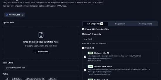 That’s where importing Postman Collections and Swagger YAML files comes in. By leveraging structured API documentation, we can automate endpoint creation, response definitions, and request setups, saving valuable time.